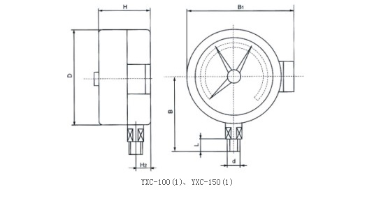 YXC電接點(diǎn)壓力表廣泛應(yīng)用于石油、化工、冶金、電站等工業(yè)部門(mén)或機(jī)電設(shè)備配套中測(cè)量無(wú)爆炸危險(xiǎn)的各種流體介質(zhì)的壓力。通常,電接點(diǎn)壓力表經(jīng)與相應(yīng)的電氣器件(如繼電器及接觸器等)配套使用,即可對(duì)被測(cè)(控)壓力系統(tǒng)實(shí)現(xiàn)自動(dòng)控制和發(fā)信(報(bào)警)的目的。